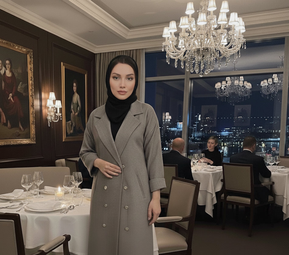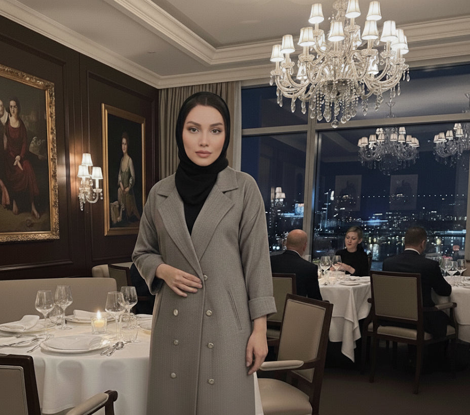 The longest sleeve cardigan, six buttons of perfection, always wrinkle-free.”